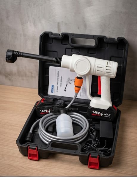 Experience powerful and convenient cleaning with the Cordless Car Wash Spray Gun Machine 148V Lithium Battery, designed for flexibility, efficiency, and ease of use. This portable high-pressure cleaner allows you to wash your car, bike, outdoor furniture, and more—anytime, anywhere—without the need for a fixed water source or power connection.